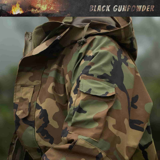 Black Gunpowder U.S. Woodland Hooded Windproof Field Jacket With Detachable Warm Fleece Lining